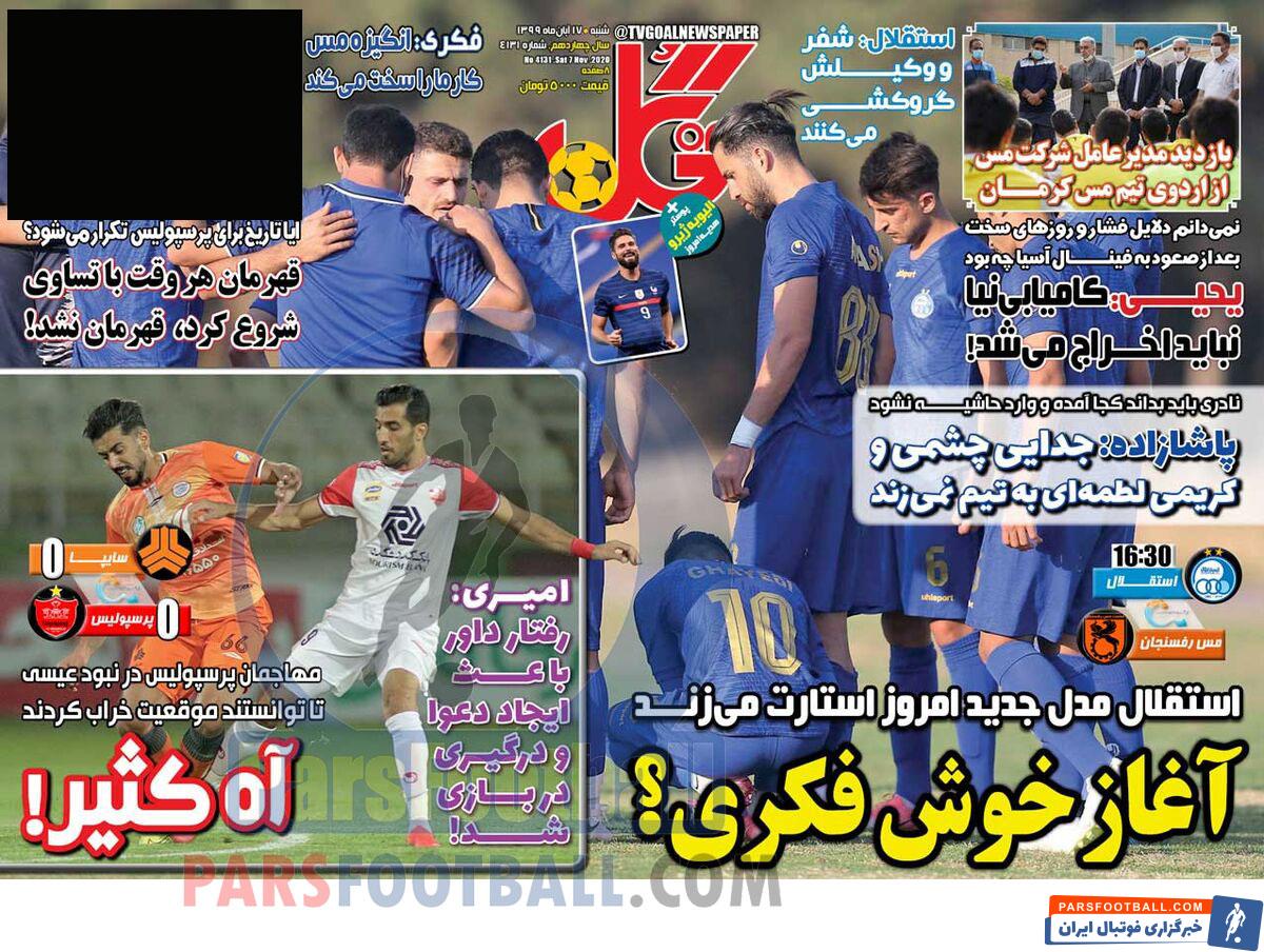 عناوین روزنامه گل شنبه ۱۷ آبان ماه به شرح زیر است :