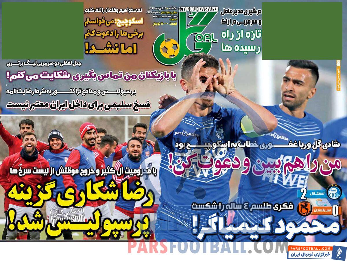عناوین روزنامه گل یکشنبه ۱۸ آبان ماه به شرح زیر است :