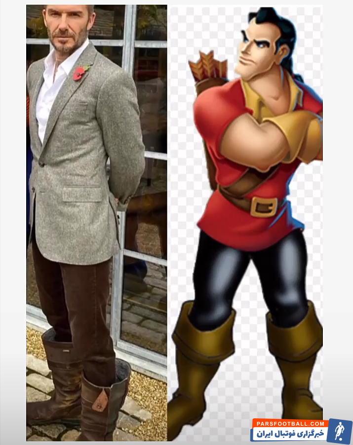 دیوید بکام چکمه هایی را پوشیده بود که به نظر میرسد برایش بزرگ هستند و او را به شخصیت کارتونی گاستون شبیه کردهاند. ویکتوریا بکام، همسر دیوید بکام، با انتشار تصویری در استوری های صفحه شخصی خود در اینستاگرام با شوخی نسبت به چکمه های بکام نوشت: