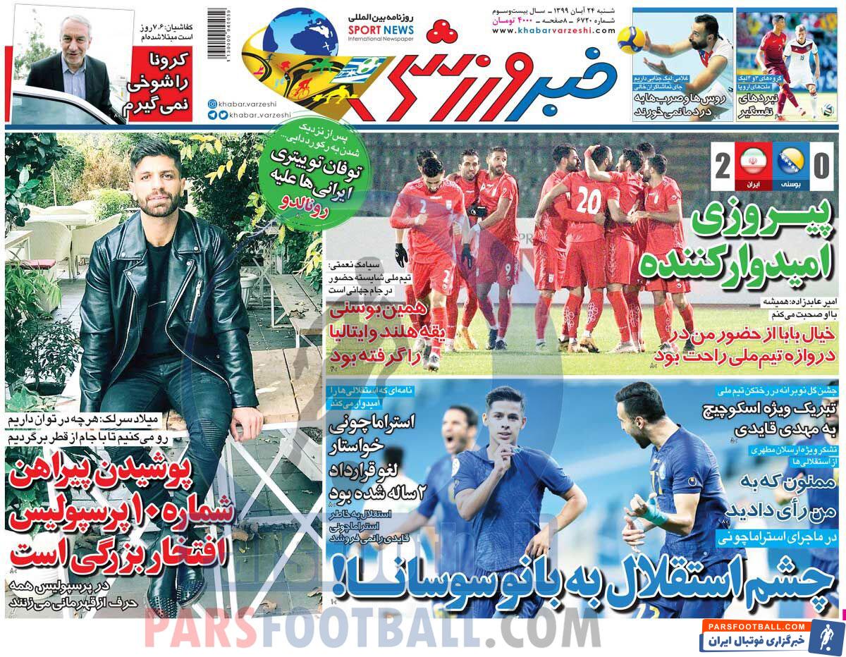 عناوین روزنامه خبر ورزشی شنبه ۲۴ آبان ماه به شرح زیر است :