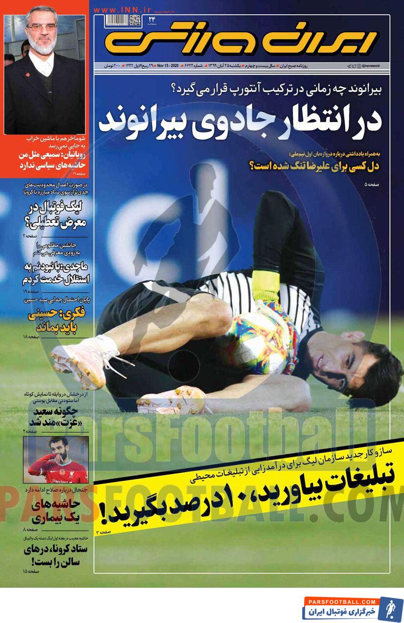 مرور عناوین مهم ایران ورزشی یکشنبه 25 آبان ماه 1399