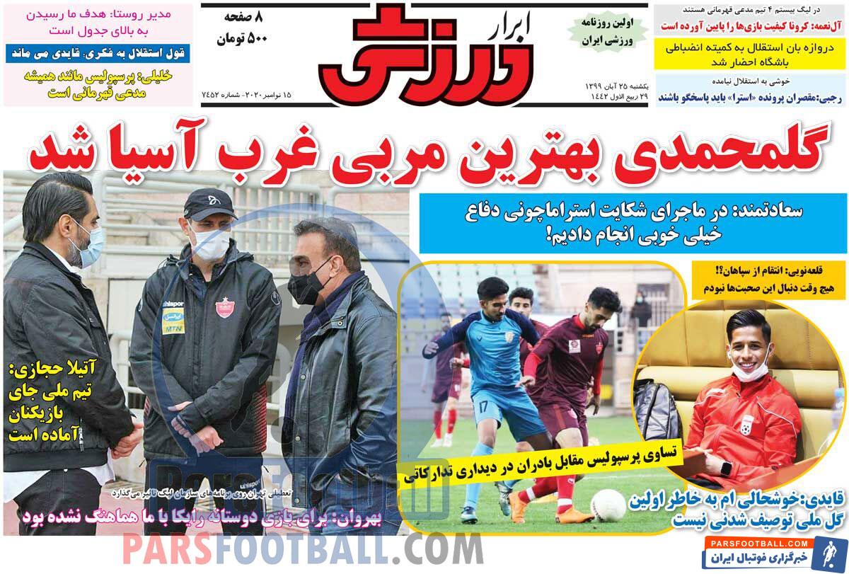 عناوین روزنامه ابرار ورزشی یکشنبه ۲۵ آبان ماه به شرح زیر است :