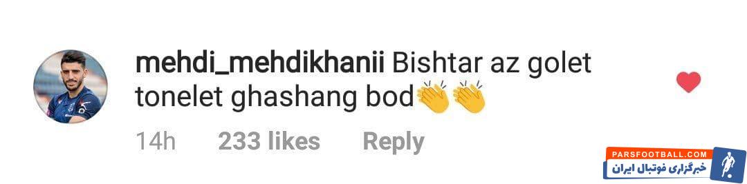 مهدی خانی که به تازگی به پرسپولیس اضافه شده است ، رفاقت دیرینه ای با مهدی قایدی دارد و پس از گلزنی قایدی پیامی را برای او فرستاده است .