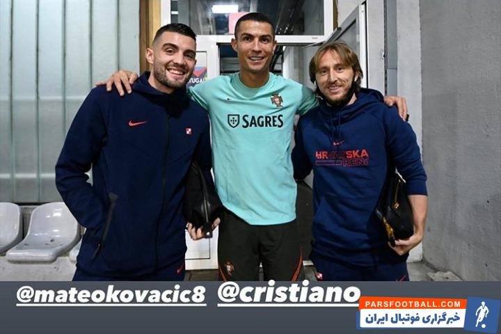 کرواسی و پرتغال در هفته ششم لیگ ملتهای اروپا دیداری نسبتا تشریفاتی خواهند داشت. یکی از نکات جالب این دیدار، رویارویی کریستیانو رونالدو با لوکا مودریچ است، دو بازیکنی که در رئال مادرید دوران خوشی را در کنار یکدیگر داشتند. اکنون این دو در قالب بازی های لیگ ملت های اروپا به مصاف یکدیگر میروند و پیش از این دیدار با یکدیگر عکس یادگاری انداختند. ماتئو کواچیچ هم که در سالهای آخر حضور رونالدو در رئال مادرید با او همتیمی بود در این تصویر وجود دارد.