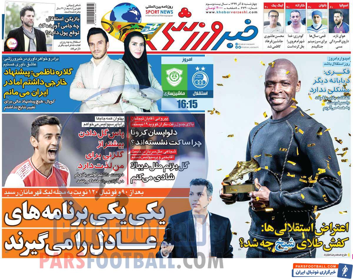 عناوین روزنامه خبر ورزشی چهارشنبه ۵ آذر ماه به شرح زیر است :