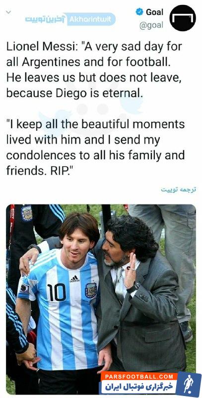 یک روز بسیار ناراحت کننده برای همه آرژانتینی ها و فوتبال. او ما را ترک می کند، اما با ما خواهد بود، زیرا دیگو ابدی است. من تمام لحظات زیبایی را که کنار او زندگی کرده ام در خاطر خواهم داشت و از این فرصت استفاده کرده و به تمام خانواده و دوستان او تسلیت بگویم.