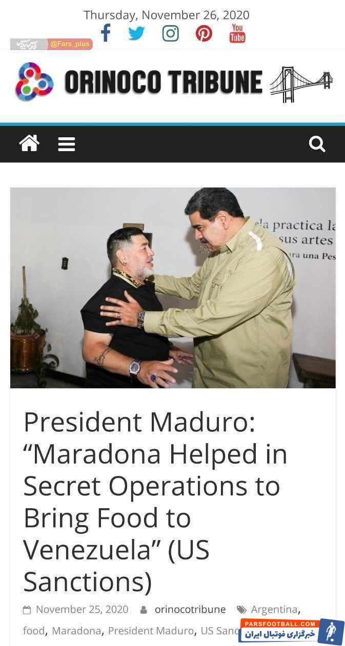 نیکلاس مادورو رئیس جمهور ونزوئلا پس از مرگ دیگو مارادونا گفت : مارادونا در عملیاتهای مخفیانه انتقال آذوقه به ونزوئلا کمک می کرد .