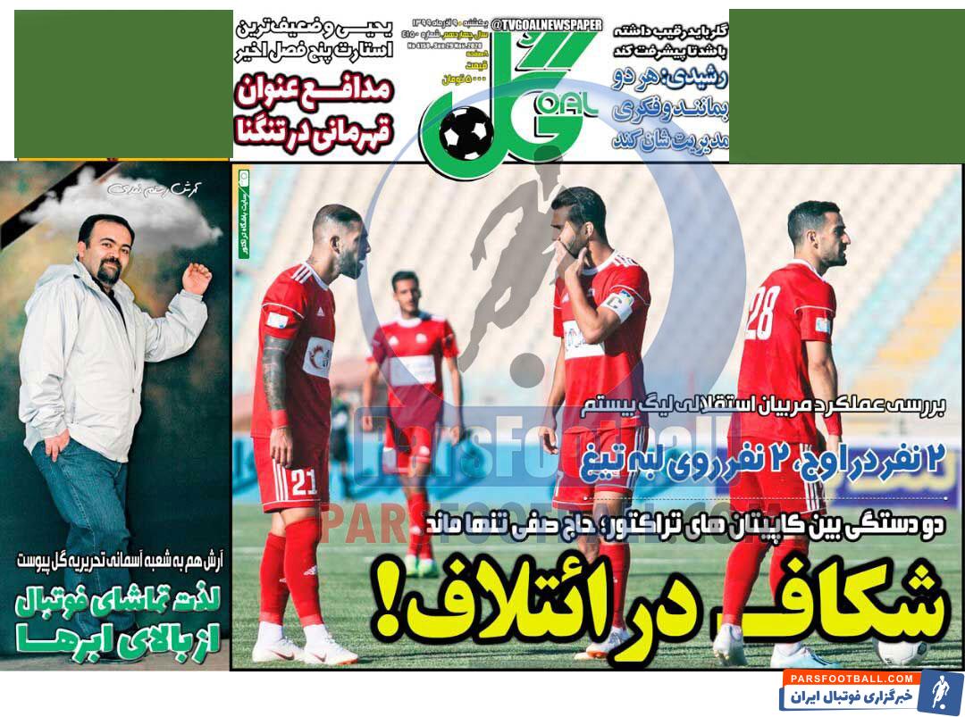 عناوین روزنامه گل یکشنبه ۹ آذر ماه به شرح زیر است :