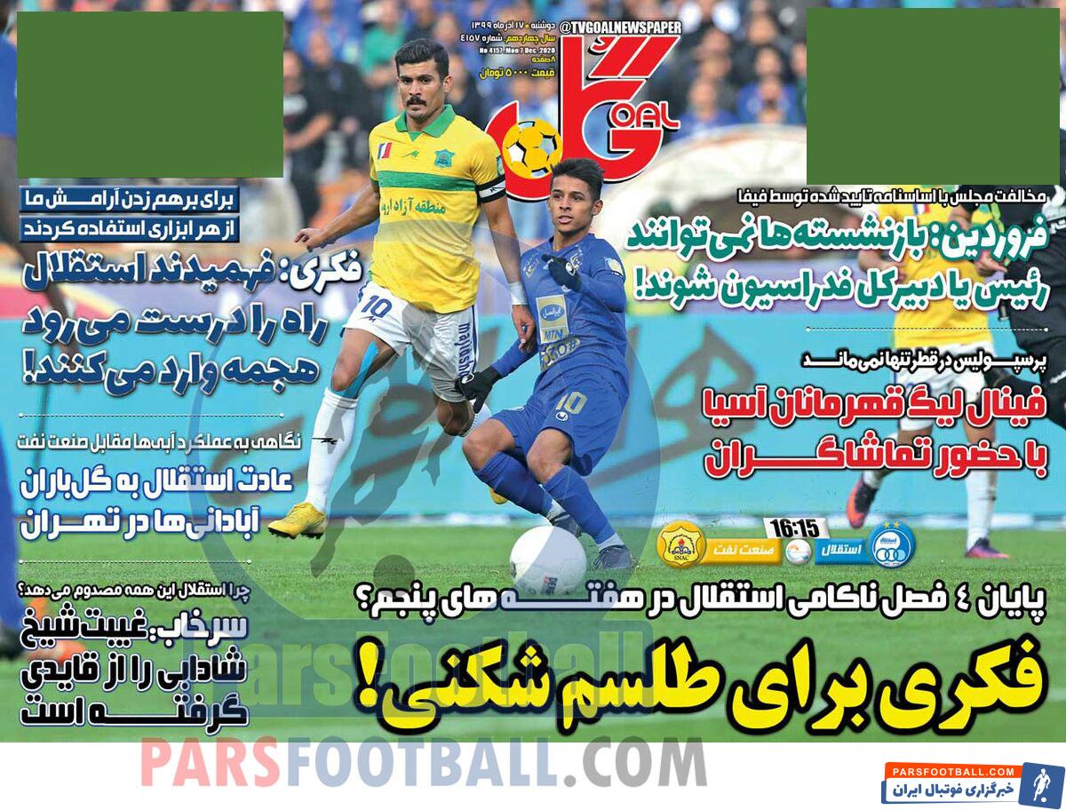 عناوین روزنامه گل دوشنبه ۱۷ آذر ماه به شرح زیر است :
