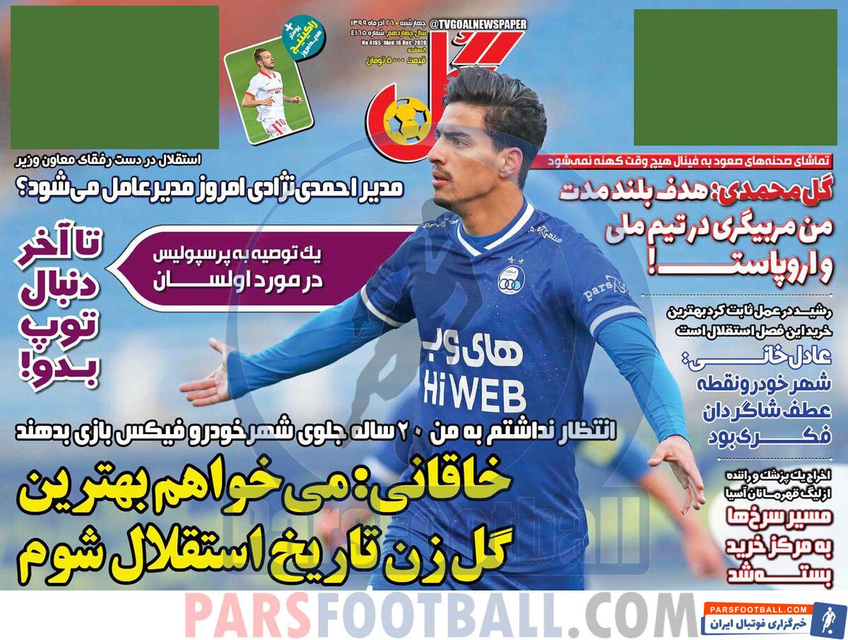 مرور عناوین مهم روزنامه گل سه شنبه 25 آذر ماه 1399