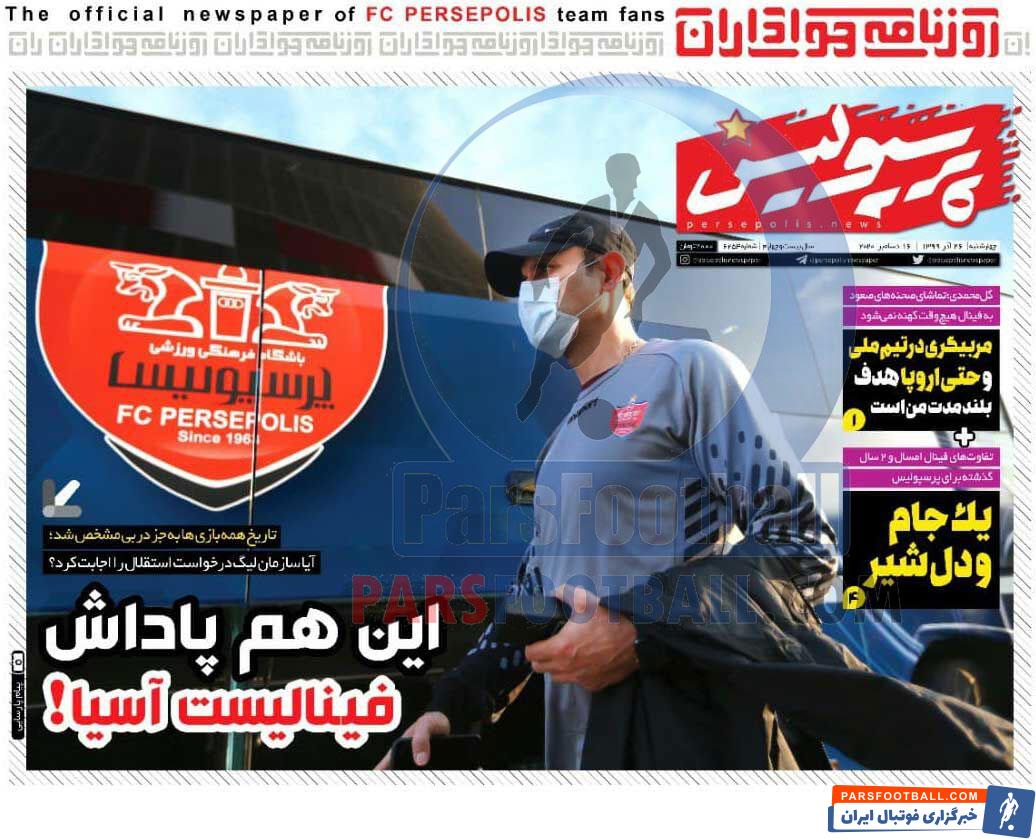 عناوین روزنامه پرسپولیس چهارشنبه ۲۶ آذرماه به شرح زیر است :