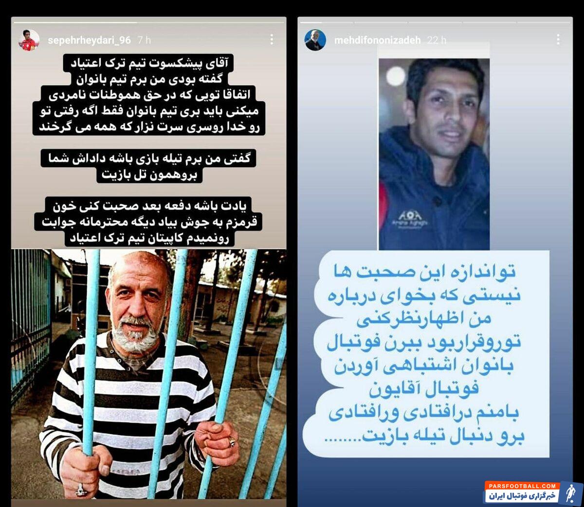 استوریهای مهدی فنونی زاده و سپهر حیدری علیه هم را می بینید
