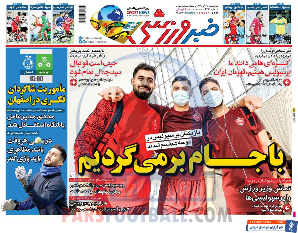 عناوین روزنامه خبر ورزشی پنجشنبه ۲۷ آذرماه به شرح زیر است :
