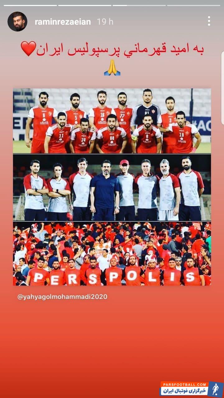 رامین رضاییان بازیکن پیشین پرسپولیس و کنونی تیم الدوحیل قطر با انتشار یک استوری در اینستاگرام برای پرسپولیس آرزوی موفقیت کرد .