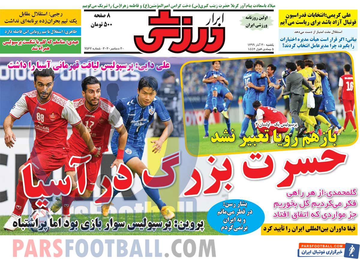 عناوین روزنامه ابرار ورزشی یکشنبه ۳۰ آذرماه به شرح زیر است :