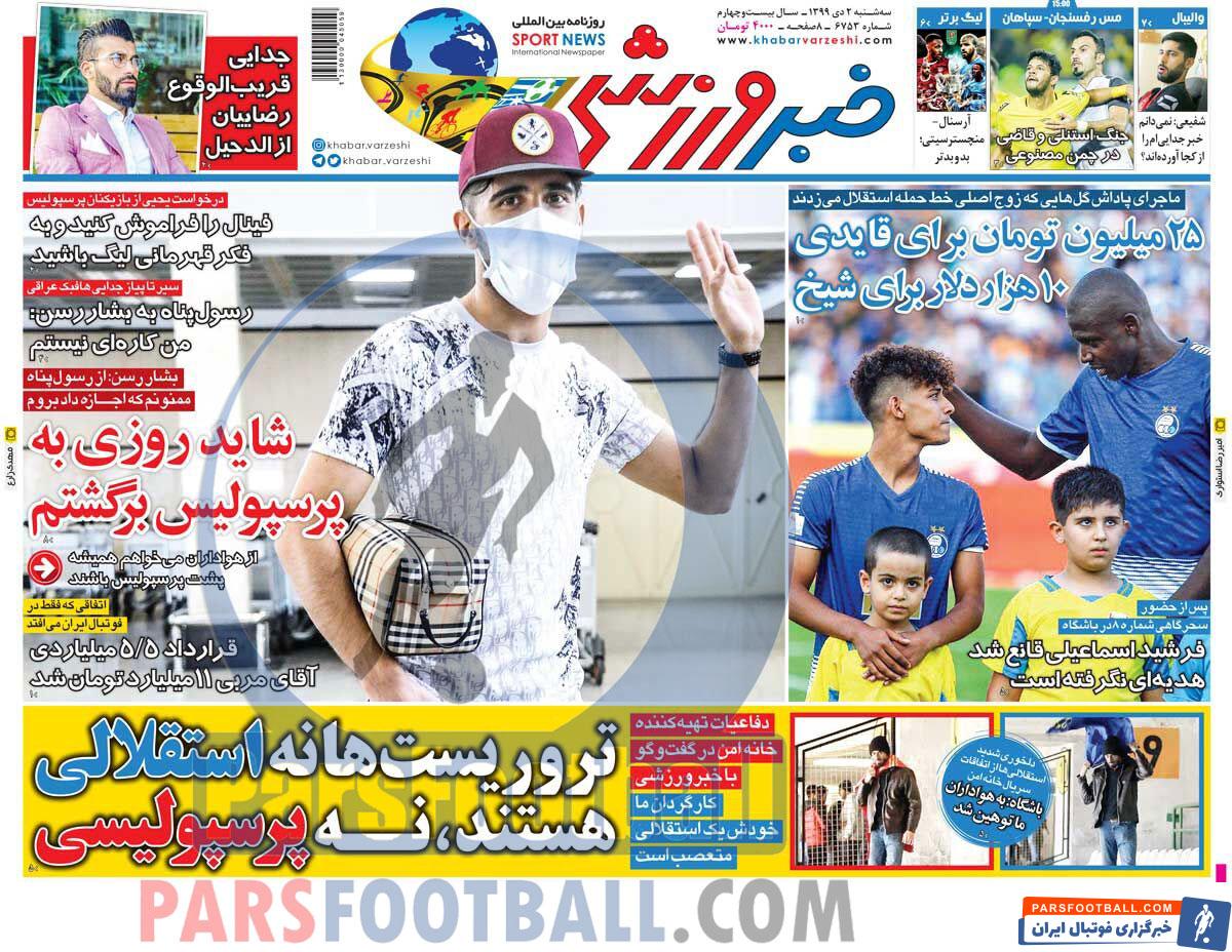 مرور عناوین مهم روزنامه خبر ورزشی سه شنبه 2 دی ماه 1399