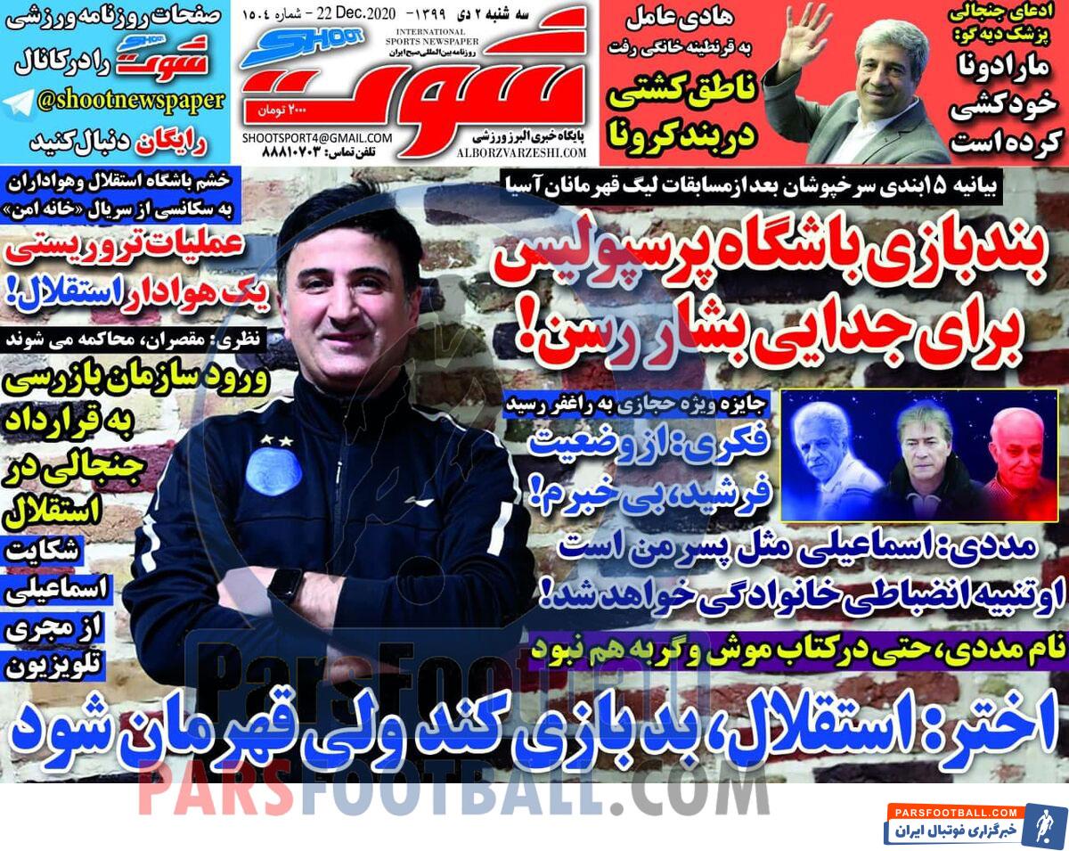 عناوین روزنامه شوت سه شنبه ۲ دی ماه به شرح زیر است :
