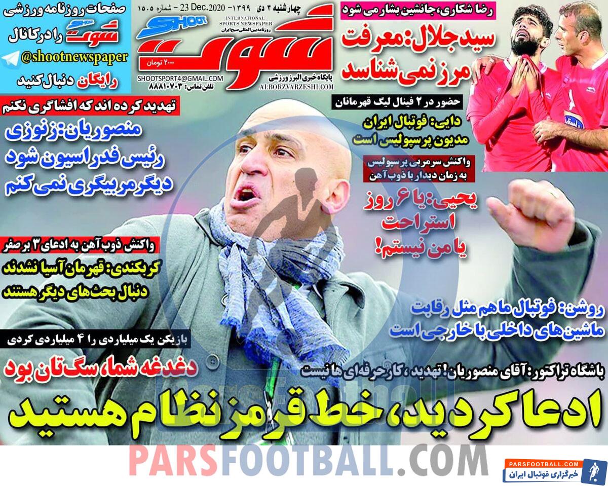 عناوین روزنامه شوت چهارشنبه ۳ دی ماه به شرح زیر است :