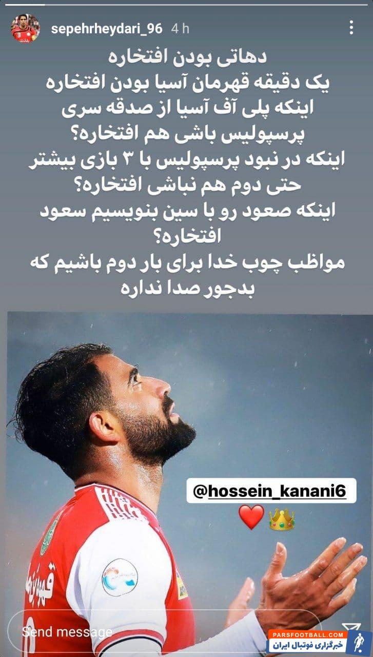 سپهر حیدری با انتشار استوری ای از محمدحسین کنعانی زادگان دفاع کرد.