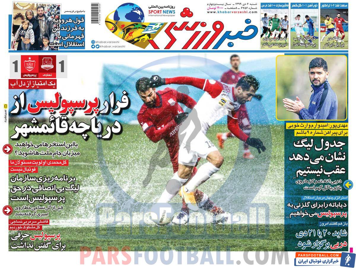عناوین روزنامه خبر ورزشی شنبه ۶ دی ماه به شرح زیر است :