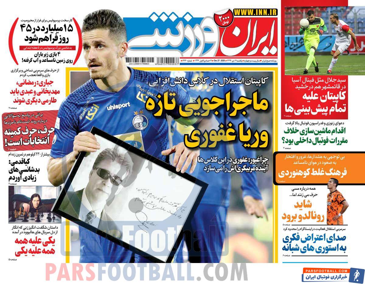 عناوین روزنامه ایران ورزشی یکشنبه ۷ دی ماه به شرح زیر است :