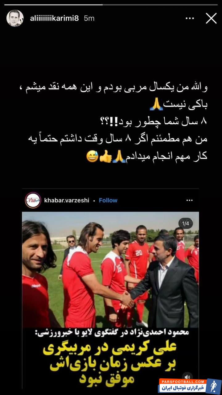 علی کریمی ، محمود احمدی نژاد را با این استوری با خاک یکسان کرد