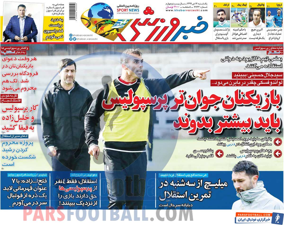 عناوین روزنامه خبر ورزشی یکشنبه ۱۴ دی ماه به شرح زیر است :