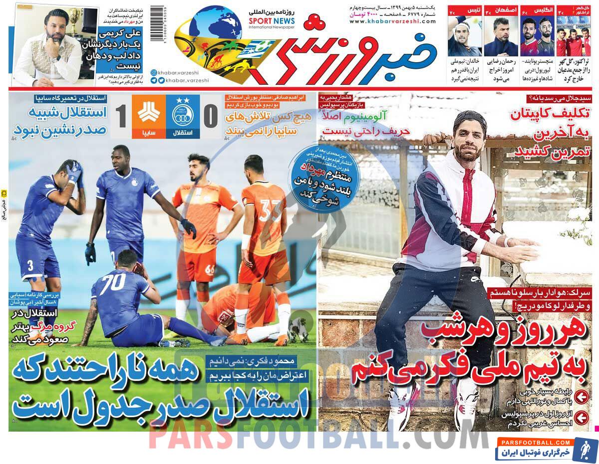 عناوین روزنامه خبر ورزشی یکشنبه ۵ بهمن ماه به شرح زیر است :