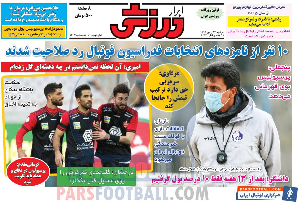 مرور عناوین مهم روزنامه ابرار ورزشی دوشنبه 13 بهمن ماه 1399