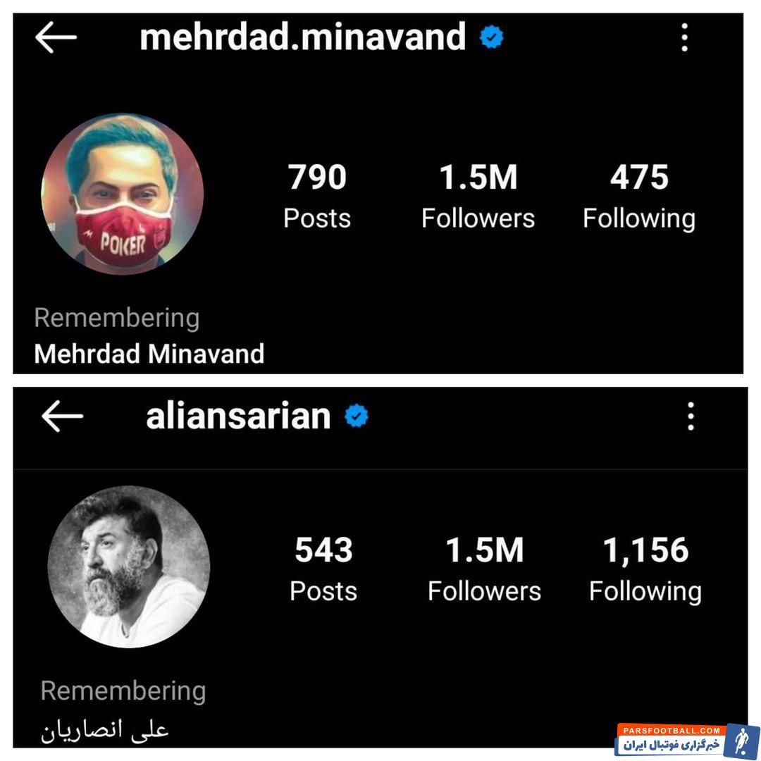 با تایید گزارش فوت از سوی اینستاگرام، صفحه اینستاگرامی علی انصاریان و مهرداد میناوند به حالت Remembering درآمد.