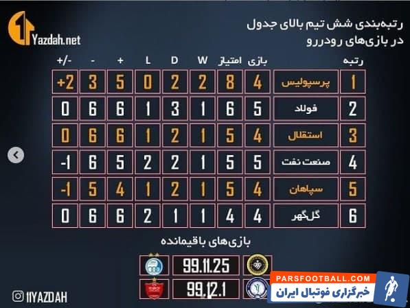 در آستانه این بازی های حساس، وب سایت یازده به عملکرد شش تیم مدعی در بازی های مستقیم پرداخته است. در این میان، پرسپولیس تنها تیمی است که تا کنون شکستی مقابل شش تیم بالای جدول نداشته است. همان گونه که در تصویر هم مشاهد می کنید، شاگردان یحیی گل محمدی ۲ پیروزی و ۲ مساوی (۸ امتیاز) از تقابل با رقبای مستقیم خود کسب کرده اند. بعد از پرسپولیس، تیم فولاد با یک برد، ۳ مساوی و یک باخت (۶ امتیاز) دومین تیم برتر است. سپاهان، صنعت نفت و استقلال هم ۵ امتیاز از رقبای مستقیم خود کسب کرده اند. گل گهر، حریف پایانی پرسپولیس در نیم فصل اول هم ۴ امتیاز از تقابل با مدعیان کسب کرده است.