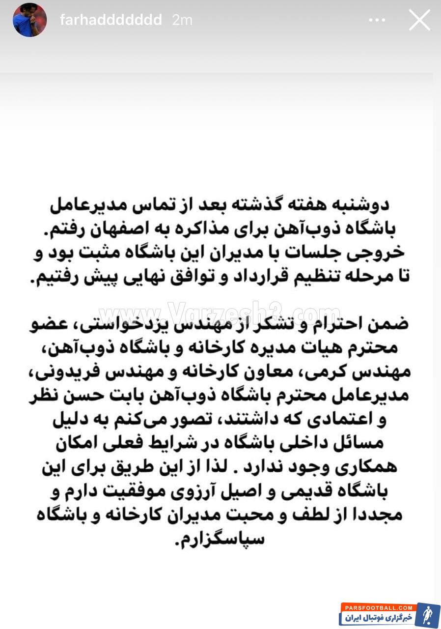 فرهاد مجیدی در خصوص مذاکراتی که با مدیران باشگاه ذوب آهن داشته، اینطور نوشته است: