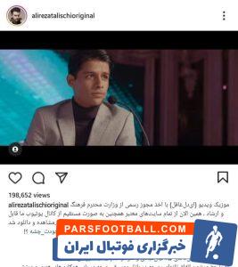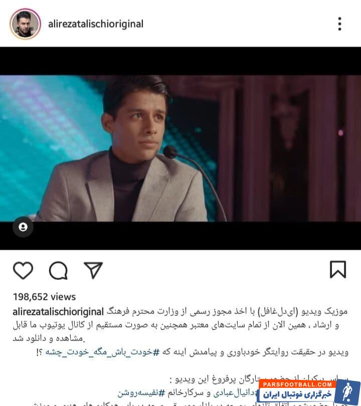 علیرضا طلیسچی ، خواننده مطرح کشور ، با انتشار یک پست در اینستاگرام از موزیک ویدیو جدید خودش رونمایی کرد که مهدی قایدی هم در آن بازی می کند.