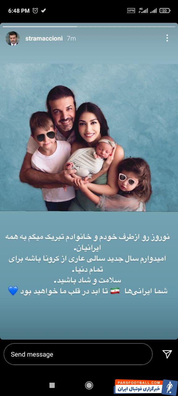 به گزارش پارس فوتبال، آندره آ استراماچونی عید نوروز را با انتشار یک استوری تبریک گفت.
