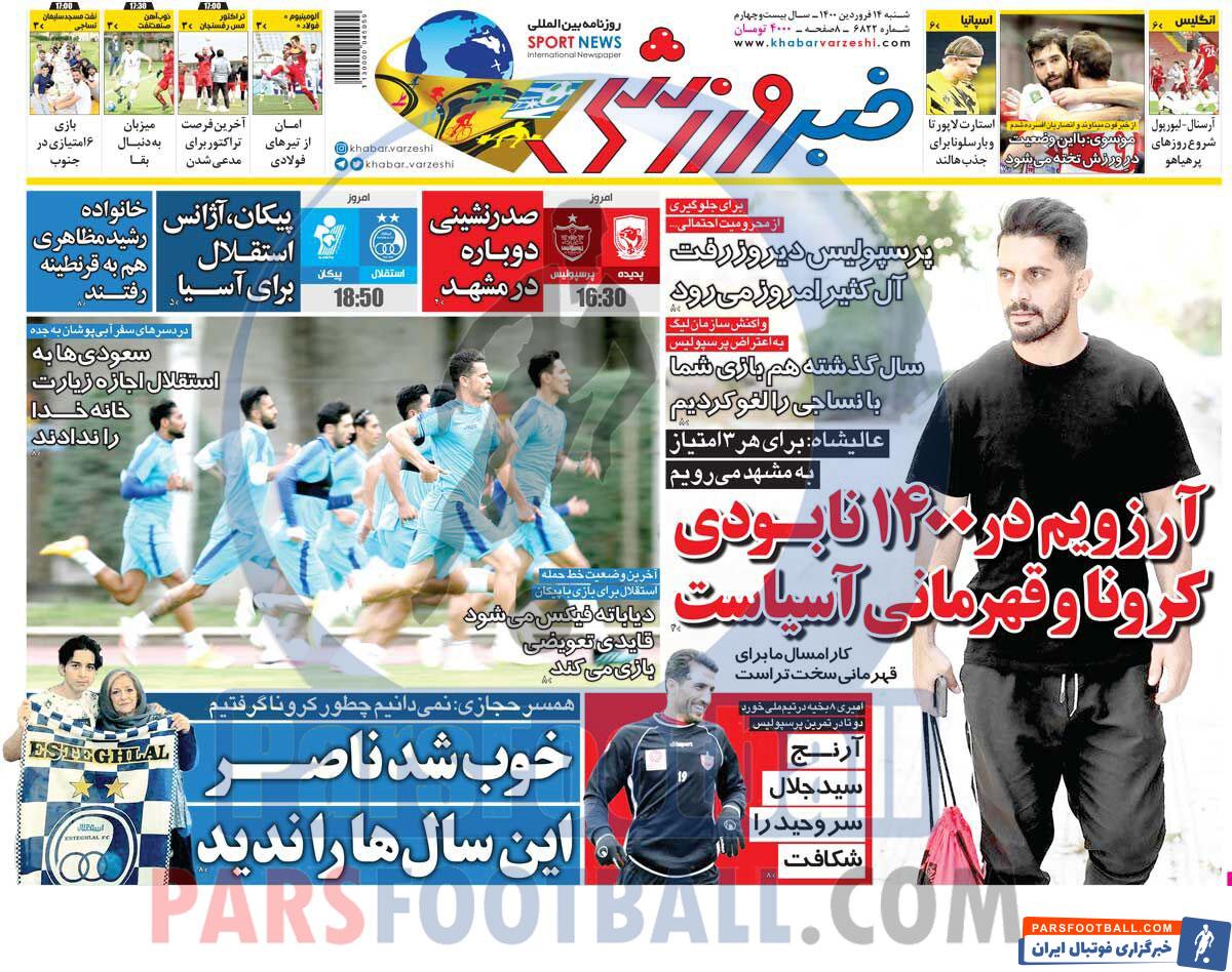 عناوین روزنامه خبر ورزشی ۱۴ فروردین ماه به شرح زیر است :