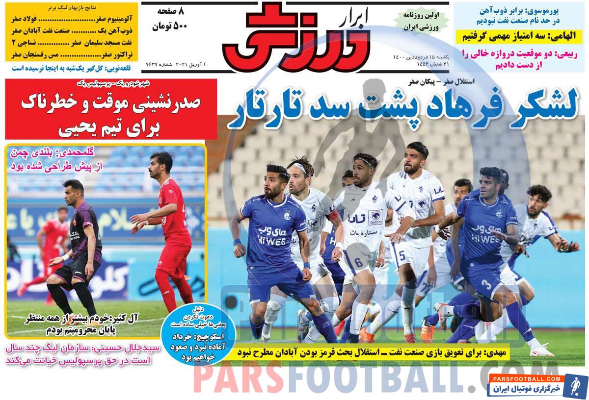 عناوین روزنامه ابرار ورزشی یکشنبه ۱۵ فروردین ماه به شرح زیر است :