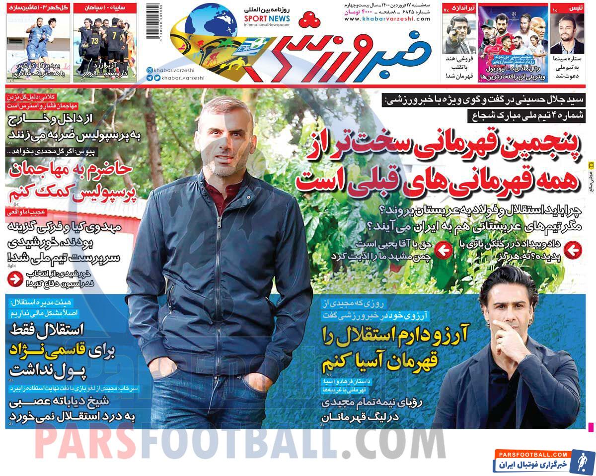 عناوین روزنامه خبر ورزشی سه شنبه ۱۷ فروردین ماه به شرح زیر است :