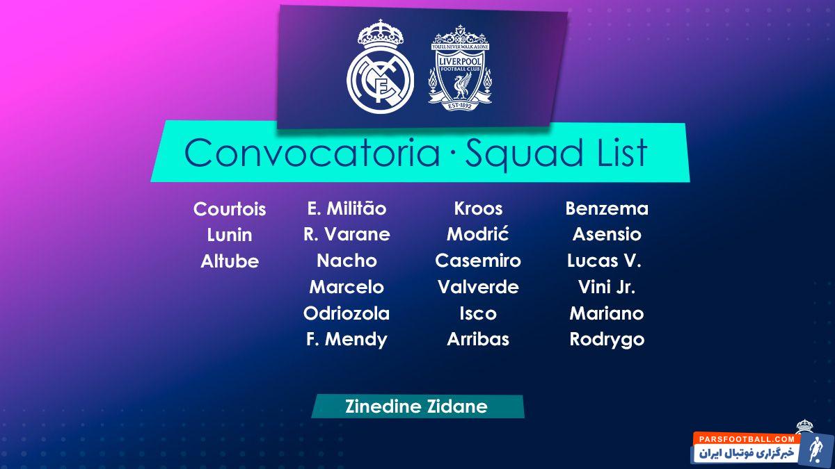 لیست رئال مادرید برای دیدار فردا شب مقابل لیورپول در لیگ قهرمانان اروپا منتشر شد.