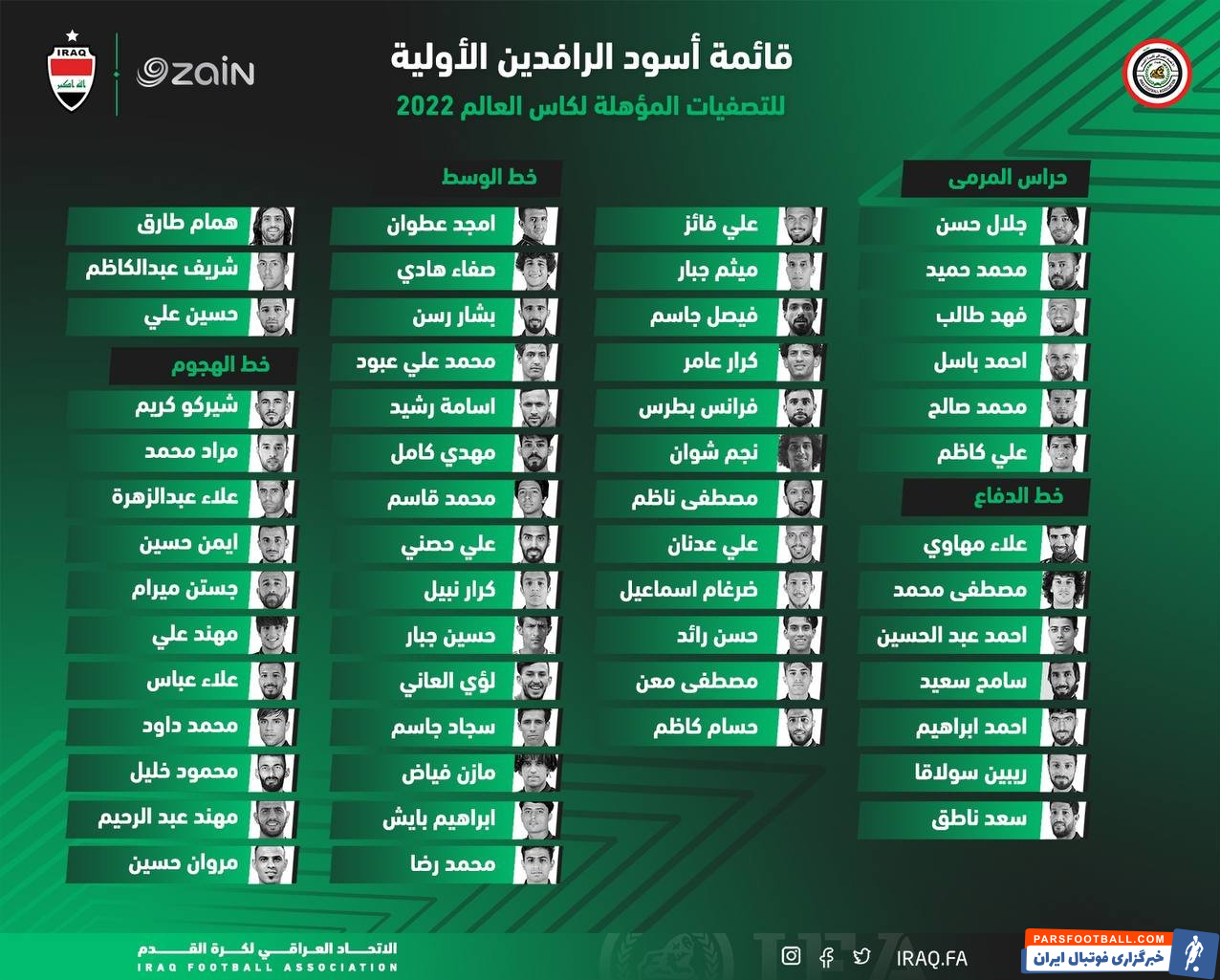 طارق همام و بشار رسن ، در فهرست ابتدایی تیم ملی عراق برای دیدار با ایران