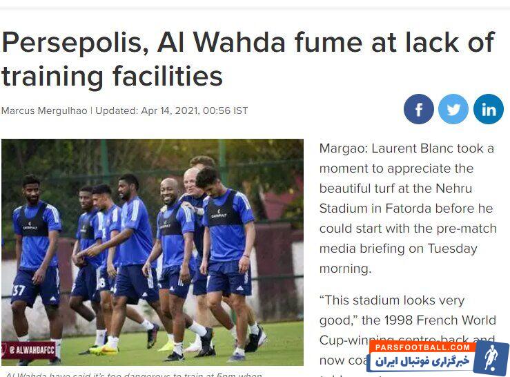 روزنامه «timesofindia» هند پس از تمجید لورن بلان از امکانات گوا : اما برخی مربیان ( سرمربی پرسپولیس ) چندان مهربان نبودند