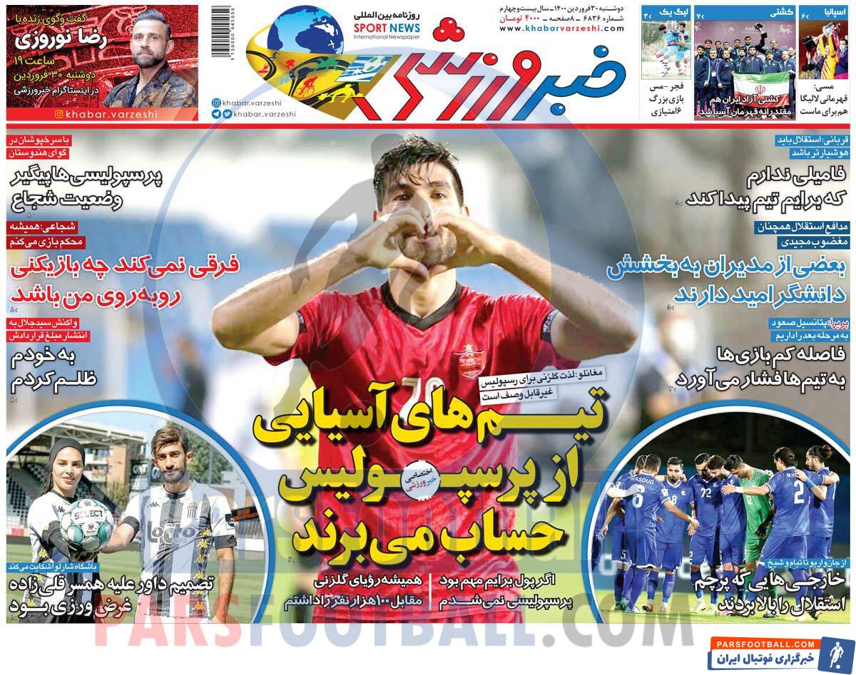 عناوین روزنامه خبر ورزشی دوشنبه ۳۰ فروردین ماه به شرح زیر است :