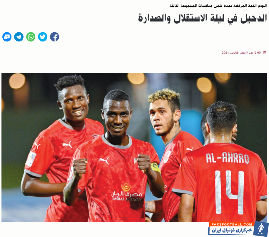 الرایه در گزارشی با عنوان «الدحیل به دنبال شکست استقلال و صدرنشینی» اظهار داشت:
