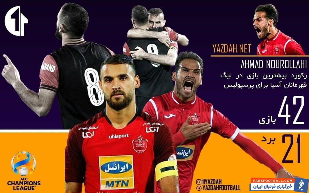 احمد نوراللهی با عبور از علی علیپور، رکورددار بیشترین تعداد بازی و برد با پرسپولیس در لیگ قهرمانان آسیا شده است. نوراللهی در این مدت یک گل زده و یک پاسگل داده است.