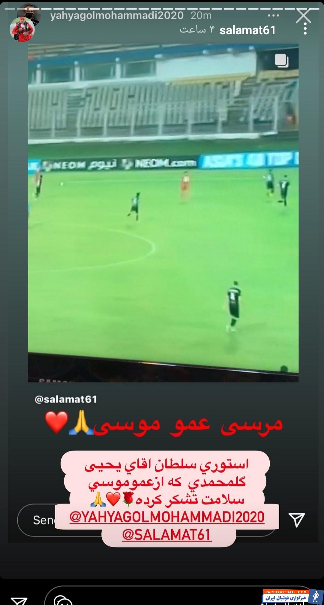 حالا یحیی گل محمدی با انتشار یک استوری از عمو موسی تشکر کرده است.
