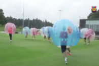 تمرین بازیکنان بارسلونا به سبک فوتبال حبابی