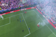 فیلم | پرتاپ مواد محترقه به داخل زمین در بازی کرواسی – چک