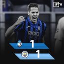 منچسترسیتی در دیداری خارج از خانه در مرحله گروهی لیگ قهرمانان، مقابل آتالانتا با تساوی ۱-۱ متوقف شدند.