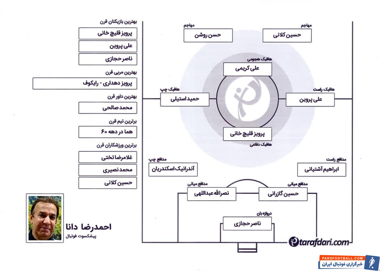 به گزارش طرفداری، احمدرضا دانا تیم منتخب قرن خود را به شرح زیر انتخاب کرد.