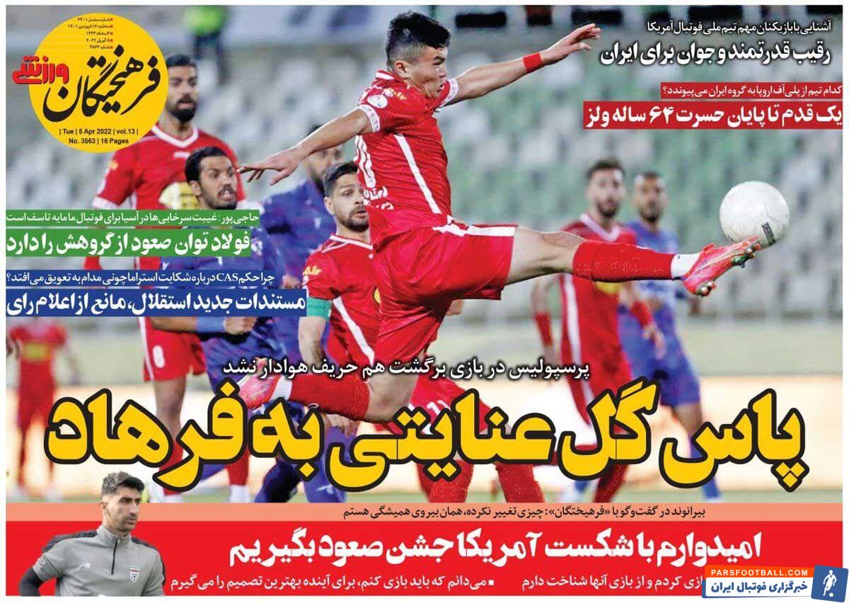 روزنامه فرهیختگان ورزشی| پاس گل عنایتی به فرهاد