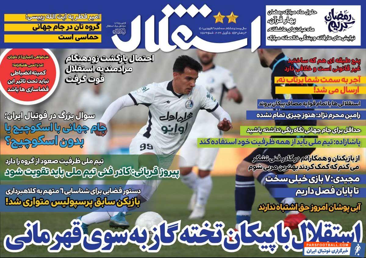 روزنامه استقلال جوان| استقلال با پیکان تختهگاز به سوی قهرمانی
